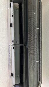 ファン・カバーについたカビ・ホコリ汚れがありましたが、エアコン専用の洗剤・道具を使い洗浄いたしました。