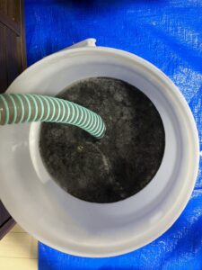 内部洗浄後バケツに水が溜まりますが真っ黒になり、T様もきれいになり喜ばれました。